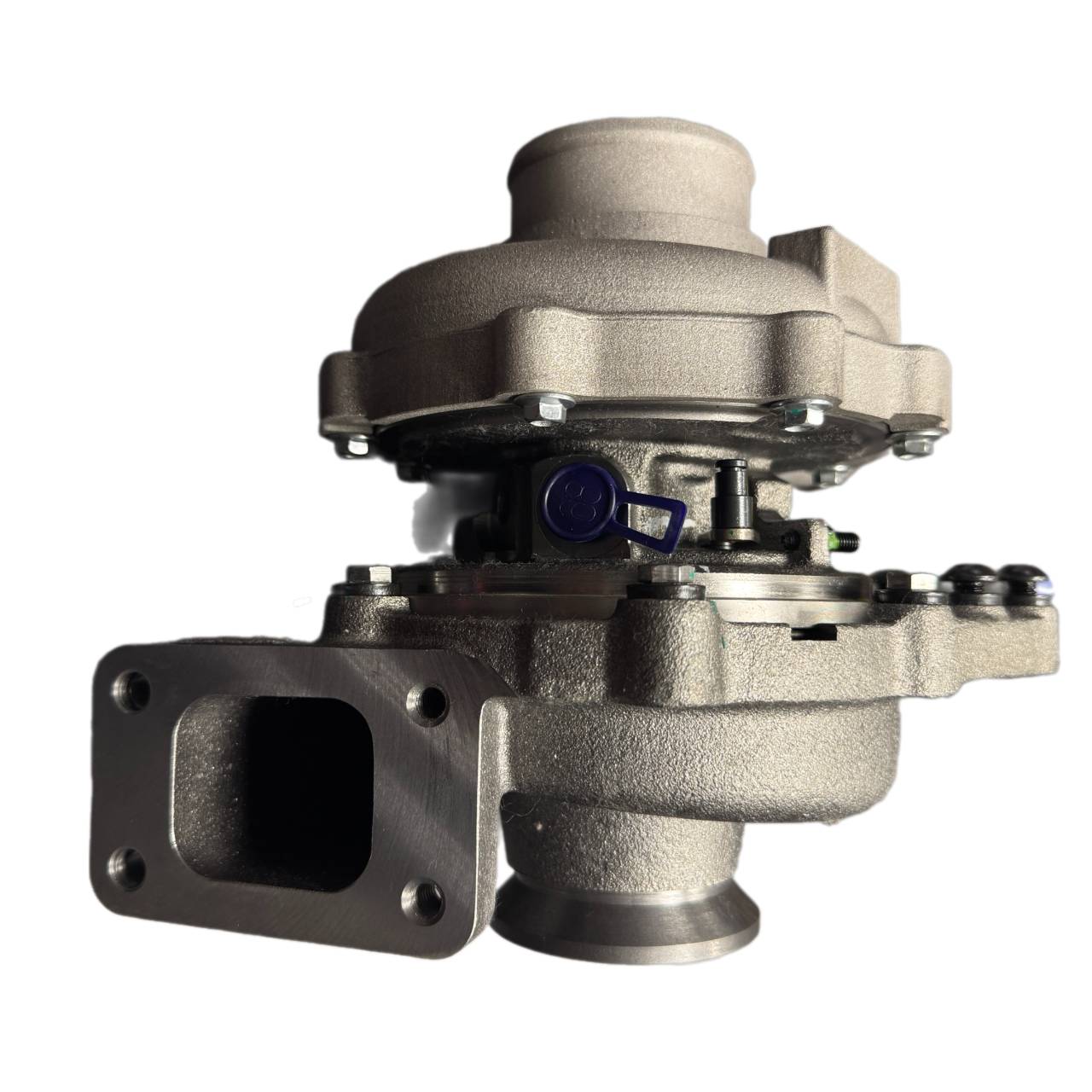 8. Установите турбонагнетатель на выпускной коллектор, убедитесь, что прокладка правильно прижата. Соединение выводов подачи/отвода масла и системы охлаждения турбонагнетателя может потребовать изменения их ориентации, для чего нужно отпустить прижимные планки на улитках. Впоследствии убедитесь, что все крепления затянуты и вал турбонагнетателя вращается свободно.